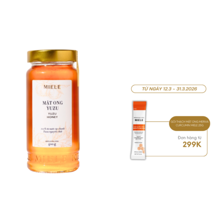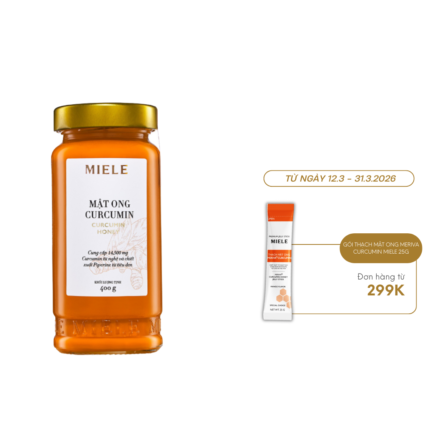 Công Thức Độc Quyền Thêm Sữa Ong Chúa • Thạch Mật ong Curcumin Miele – Với thành phần giữ trọn công thức mật ong hoa nhãn + bộ đôi vàng cho hệ tiêu hóa "Hoạt chất Curcumin & Piperine" và đặc biệt bổ sung thêm Sữa ong chúa cao cấp • Kết cấu dạng thạch mềm, dai, không cần pha • Hương xoài ngọt ngào, thanh mát, thơm ngon dễ dùng, phù hợp với trẻ em trên 3 tuổi