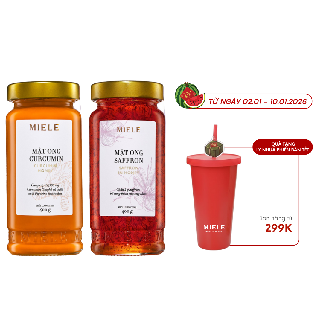Thành phần: Mật ong (99%), Saffron (0,5%), sữa ong chúa (0,5%)