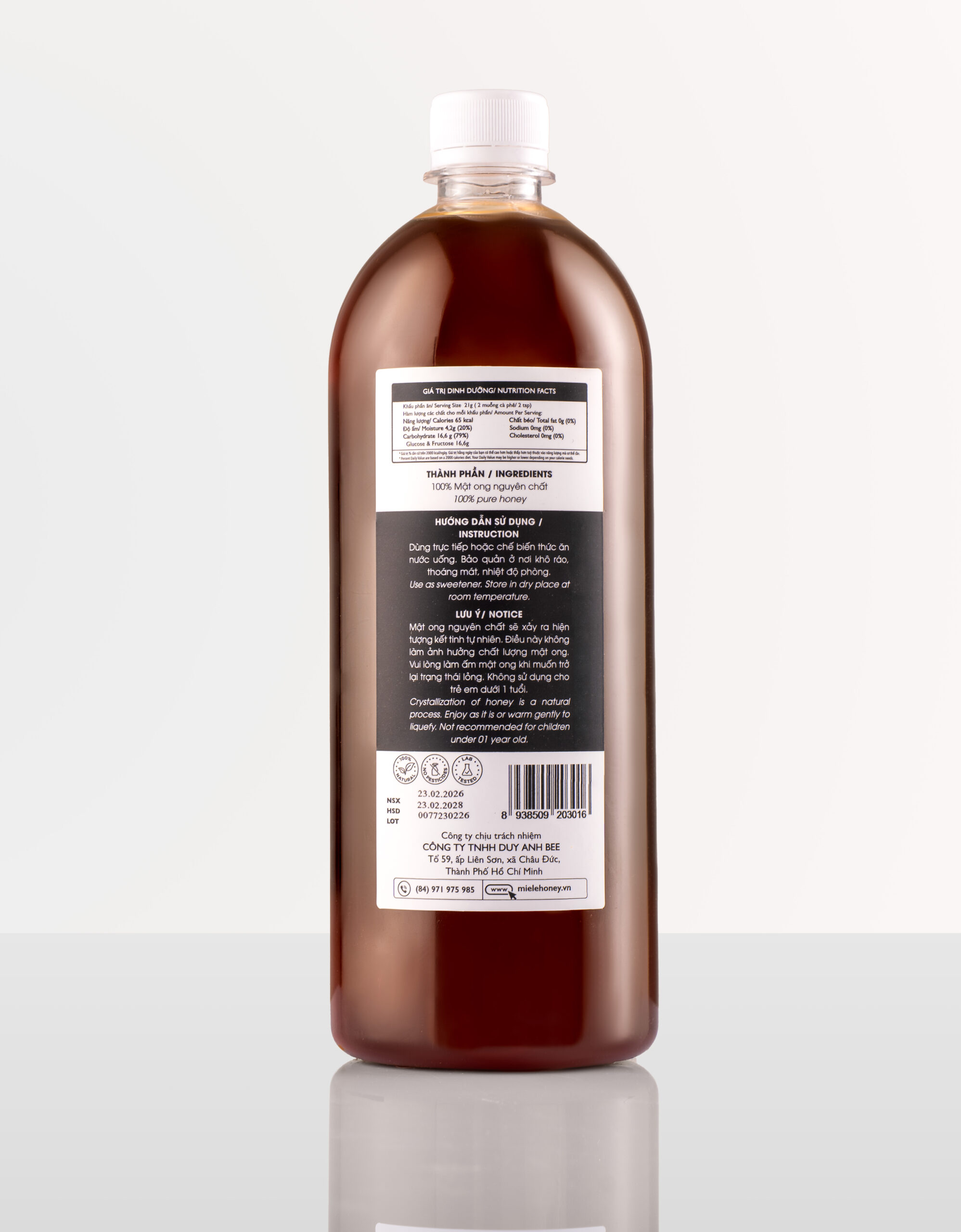 Lưu ý: Mật ong có thể lên ít bọt sau khi mở nắp.