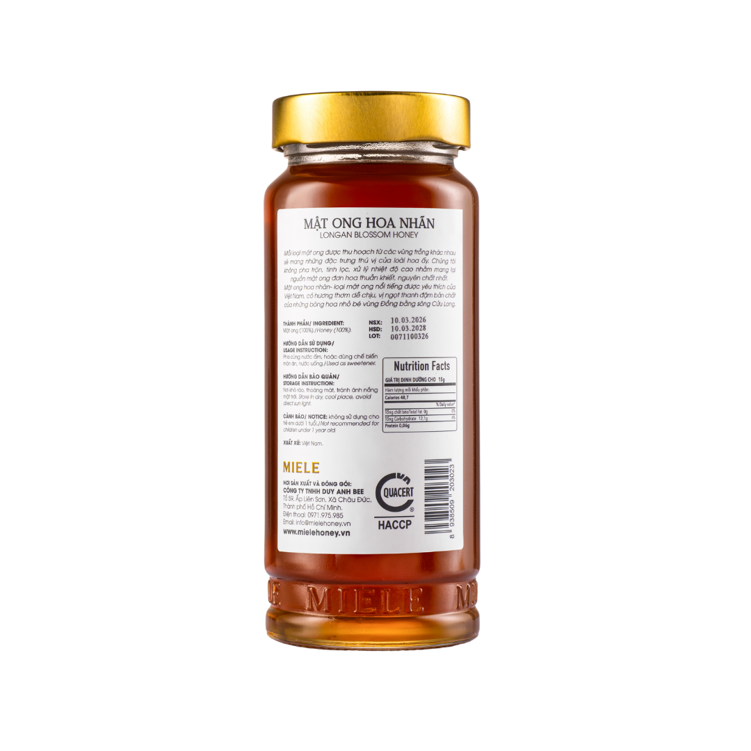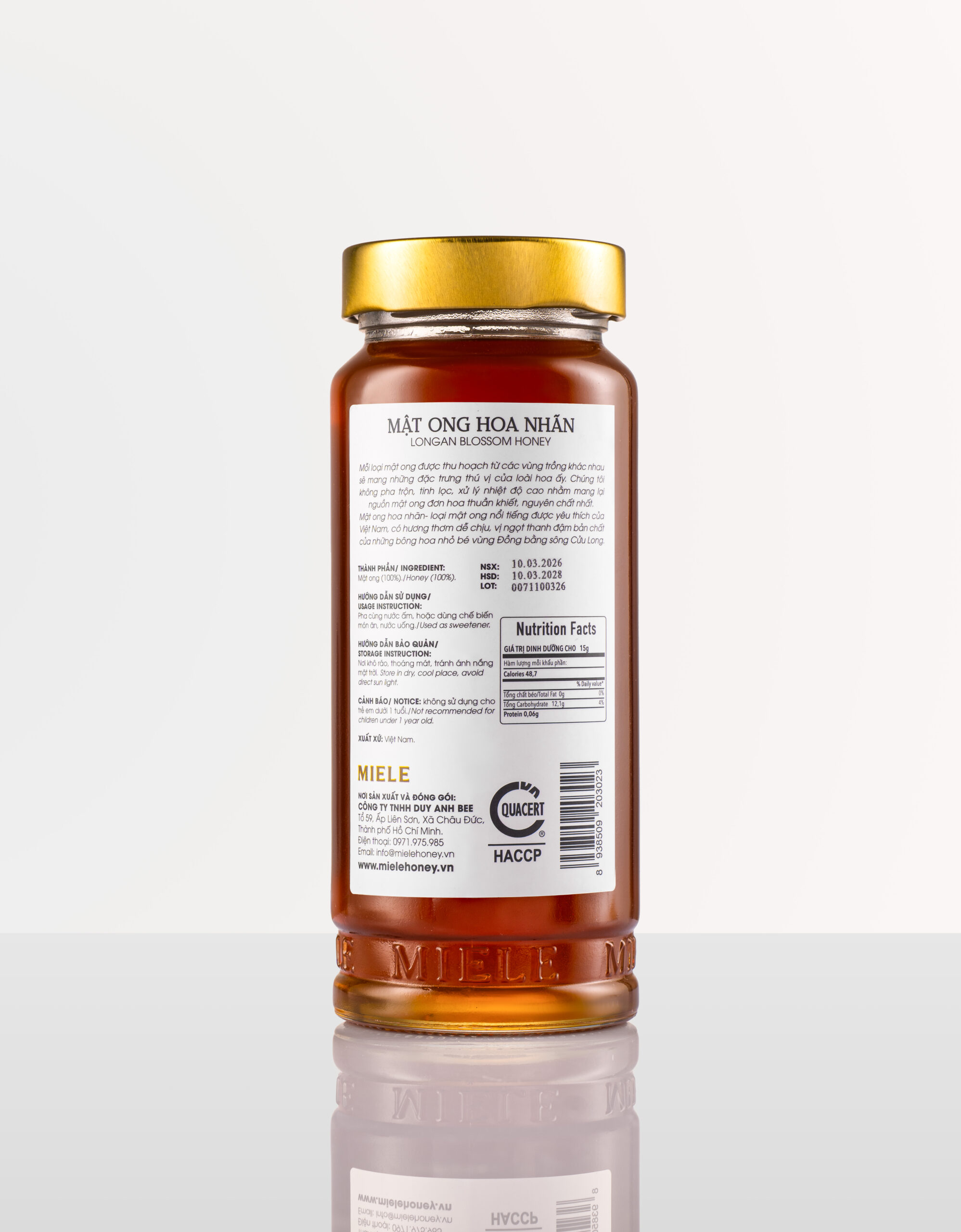 Mật Ong Hoa Nhãn Miele sở hữu sắc hổ phách ấm, nổi bật với vị ngọt đậm đà, rõ nét cùng hương thơm dịu nhẹ đặc trưng từ những chùm hoa nhãn nhiệt đới. Vị ngọt tròn đầy, dễ cảm nhận ngay từ lần thử đầu tiên, phù hợp với những ai yêu thích mật ong có hậu vị rõ ràng và chiều sâu.