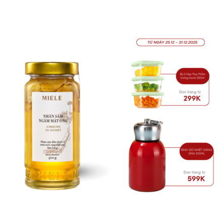 Nhân sâm ngâm mật ong Miele được làm từ Mật ong nguyên chất và Nhân sâm tươi 6 năm tuổi được phơi khô ở nhiệt độ thấp nhằm giữ được những dưỡng chất có trong củ sâm.