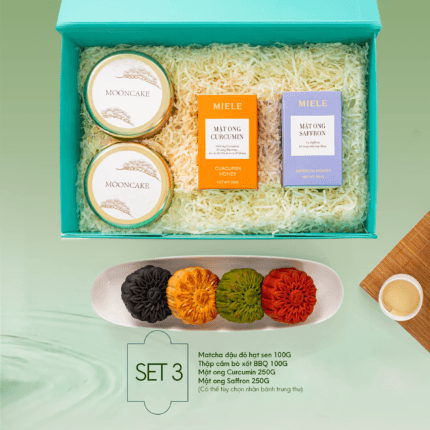 𝐒𝐄𝐓 𝟑 | 𝐌𝐢𝐞𝐥𝐞 𝐏𝐫𝐞𝐦𝐢𝐮𝐦 𝐇𝐨𝐧𝐞𝐲 𝐱 𝐒𝐚𝐯𝐨𝐮𝐫𝐞́ 𝐁𝐚𝐤𝐞𝐫𝐲 - Matcha đậu đỏ hạt sen 100g - Thập cẩm bò xốt BBQ 100g - Mật ong Curcumin 250g - Mật ong Saffron 250g